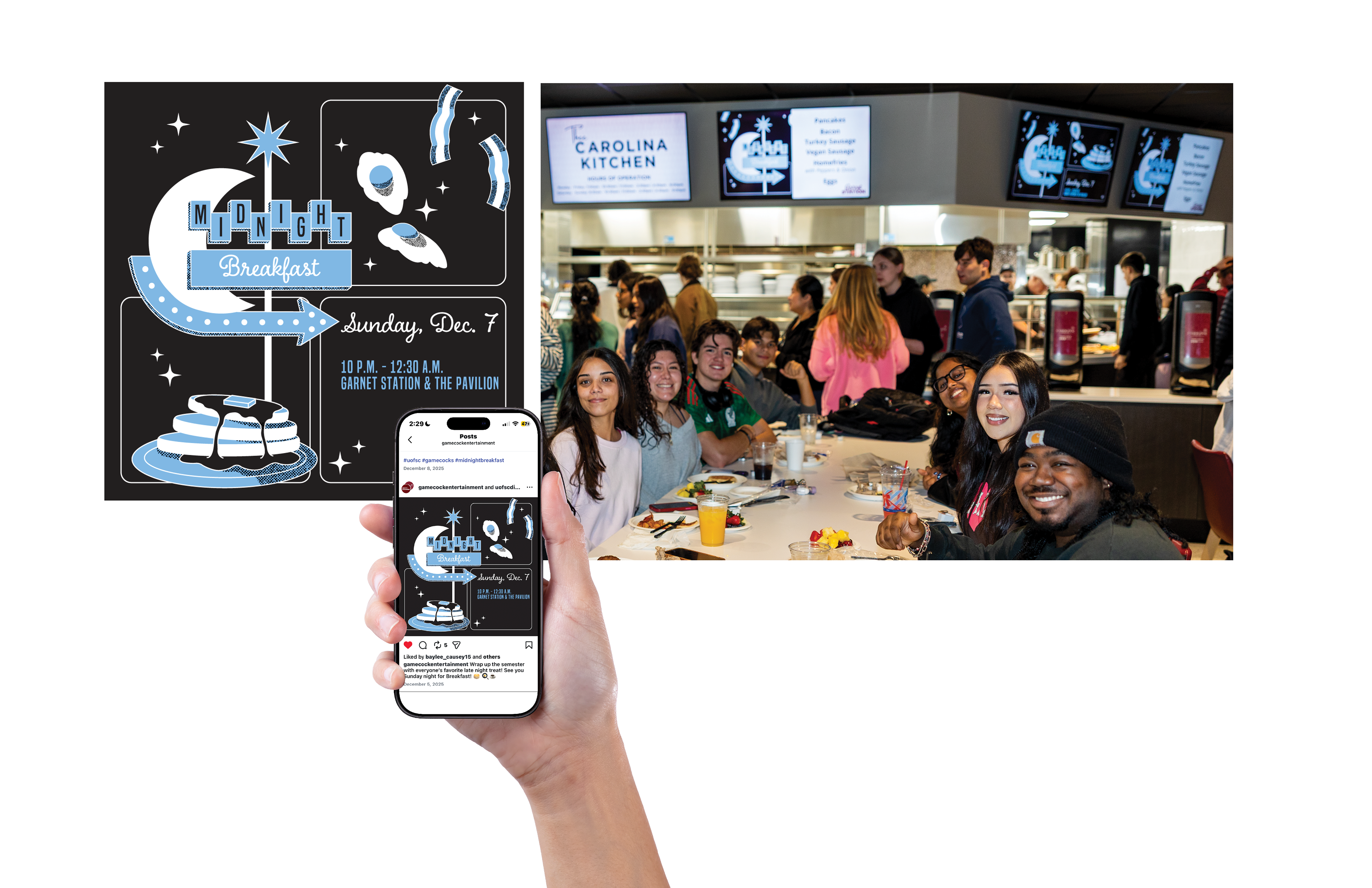 Gamecock Entertainment organizes Midnight Breakfast to give students a late-night reprieve from the stress of finals week in the form of hot and ready breakfast fare.